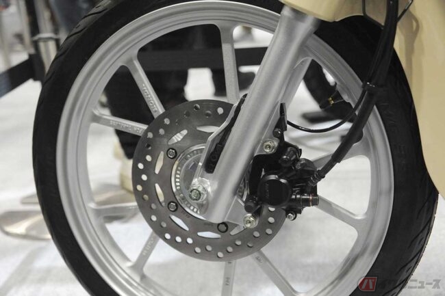 「スーパーカブ110Lite」のコンセプトモデルでは、前輪ブレーキに「スーパーカブ110」と同じ油圧式ディスク(ABS装備)が使われるなど、現行の50ccには装備されていなかった安全性の高さも期待できます。