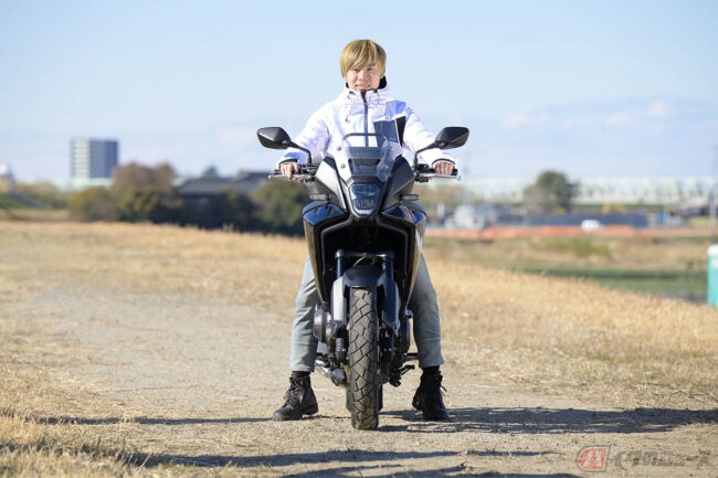 クロスオーバーモデルは大柄なバイクが多い中、タンクからシートにかけての形状がスリムになっていて、比較的、足つき性は良い方に感じられます。