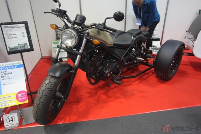 茨城に拠点を置く「サクマエンジニアリング」は、2025年3月21~23日にかけて開催された第41回大阪モーターサイクルショー2025で、ホンダ「レブル250」をベースにしたトライクとトレーラーを出展しました。
