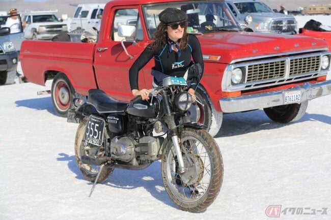 映画『世界最速のインディアン』(2005年)の舞台となった、アメリカ・ユタ州の塩の平原で繰り広げられるスピードトライアルに、日本人女性がホンダ「スーパーカブC100」(1958年発売)で挑みます。