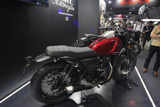 なお、マットモーターサイクルズ・ブースではカスタムテイスト溢れる幅広いモデルを展示。英国バーミンガムで生まれ育った、同ブランドの世界観が感じられる展示とっています。