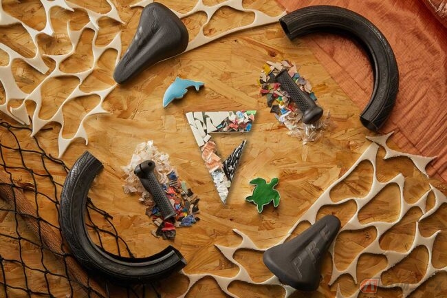 同様にホイール、ステム一体型ハンドル、シートポストもリサイクルカーボンファイバーで製造され、タイヤ、グリップ、サドル、その他のコンポーネントには、廃棄された海洋プラスチックを原料としたナイロンなどのリサイクル素材が使用されています。