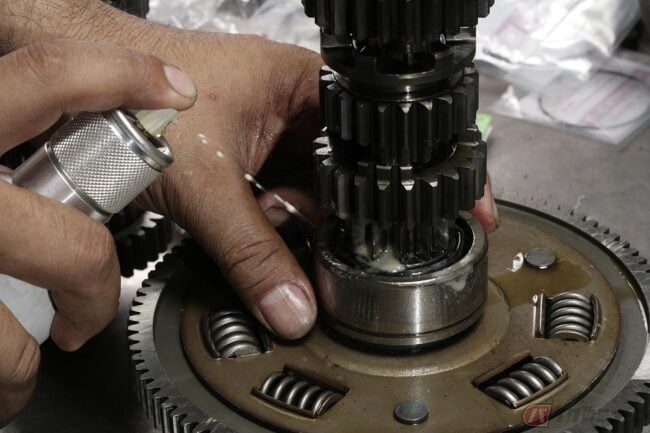 メーター交換されてはいましたが、実走行で7000~8000kmあたりだと伺っていたミッションコンディションは素晴らしく、ミッションシャフト及び各ギヤのスプライン間でも気になるガタは皆無でした。