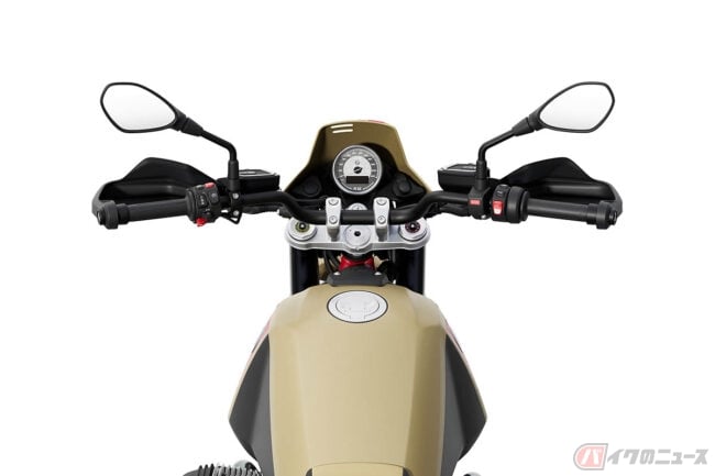 また、R12 G/Sではフラットなシートを採用することでスタンディング時の自由なライディングを可能としており、タンクの形状もオフロード走行時に膝をホールドできるよう設計。