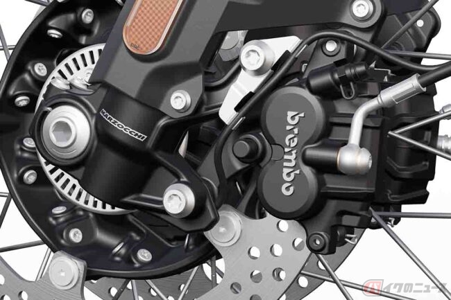 フルアジャスタブルのサスペンションはフロント210mm、リア200mmのストロークが確保されているため、本格的なオフロード走行も可能で、240mmの最低地上高とされたことで大きな障害物を乗り越えることもできます。