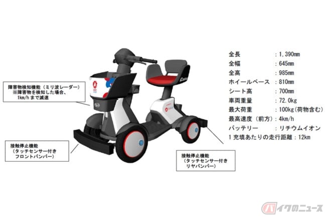 ・車両重量72㎏、最大荷重100㎏(荷物を含む)
