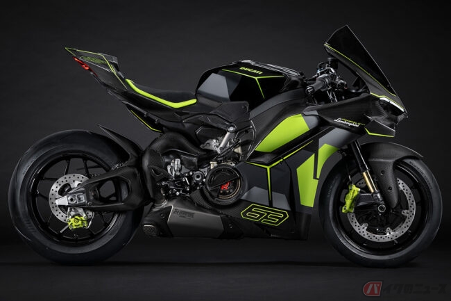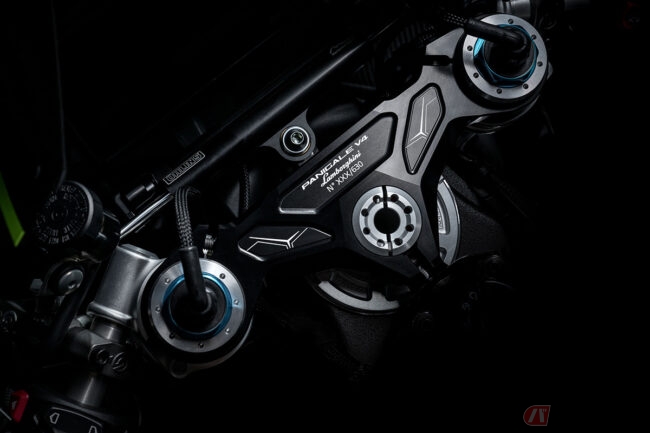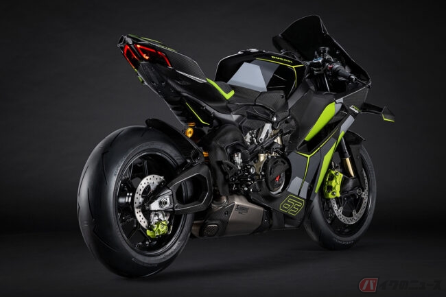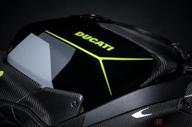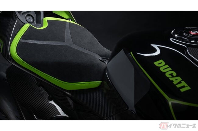 また、パニガーレV4Sよりも2kg軽量な車重185kgに仕上げられた同特別仕様車では、レブエルトを連想させるテールピースやウイング、シート表皮を採用。