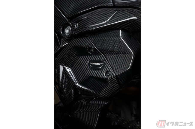 同社の誇るV4エンジン「デスモセディチ・ストラダーレ」に専用のアクラポビッチ製エキゾーストシステムを備えることでパニガーレV4Sを上回る最高出力218.5ps/13,500rpm。