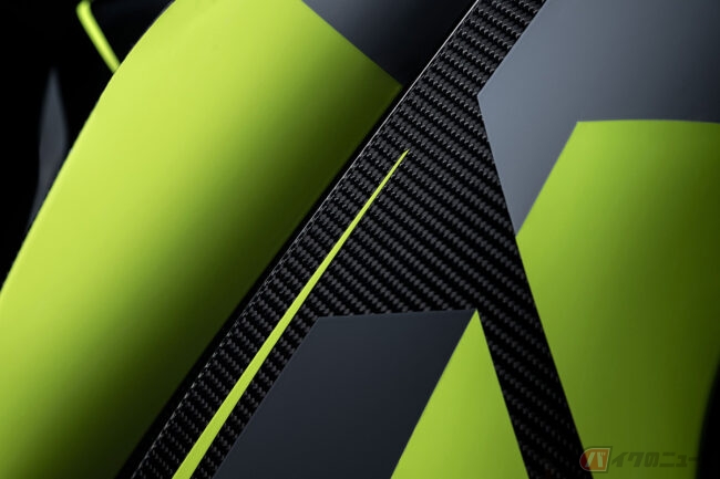 630台限定で製造されるパニガーレV4ランボルギーニは、ランボルギーニ自動車初のHPEV(高性能電気自動車)ハイブリッド・スーパースポーツカーである「Revuelto(レブエルト)」にインスパイアを受けたモデルで、外装にはレヴエルトと同様の折パターンとされたカーボン素材を使用し足元には専用鍛造ホイールを採用。