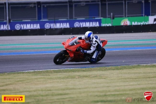 「こうした条件の良いところで乗ると、パニガーレV4 Sの良さや進化がわかりやすいですよね。DREは競争やタイムアタックの場所でなく、自分のペースで色々と試すことができる場所。今回は3日間を通して新しいパニガーレV4 Sのリアブレーキの電子制御を絶賛する方が多かったですね。