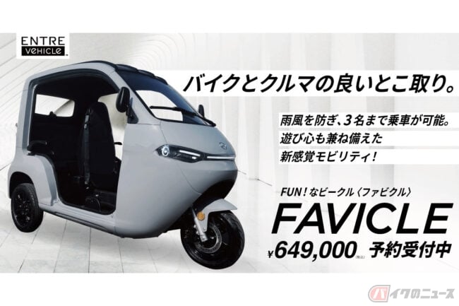 株式会社アントレックスは、モビリティ事業として3人乗り電動トゥクトゥク「FAVICLE(ファビクル)」の予約を開始しました。
