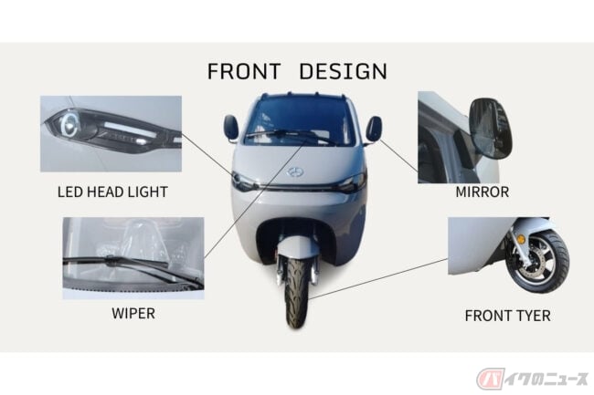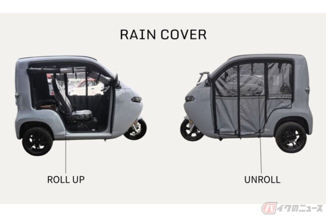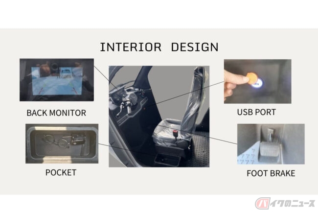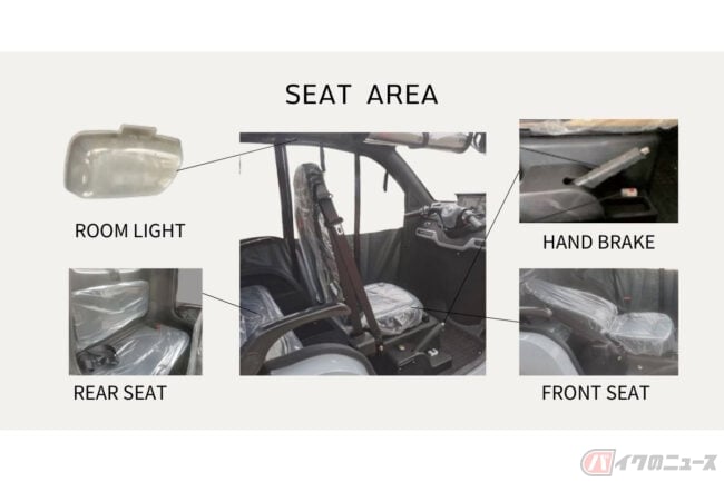 また、サイドに別売りのレインカバーを取り付けることで雨風を防ぐことの可能で、ワイパーや安全性を高める上部ブレーキランプ、リアフォグランプ、バックカメラのほか、快適性・利便性を高める温風ヒーター、室内灯なども備えられています。