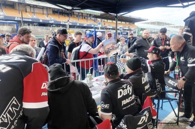 Dafy-Rac 41-Hondaは、フランスを拠点とするチームで、今年クラス優勝を狙っている実力派のホンダ系チームなんだとか。ホンダ「CBR1000RR-R」のマシンでカウルに大きく「Dafy」と描かれているので、走っている瞬間も見つけやすかったです。友人のチームだからこそ親近感が湧くし、より応援に熱が入りました!