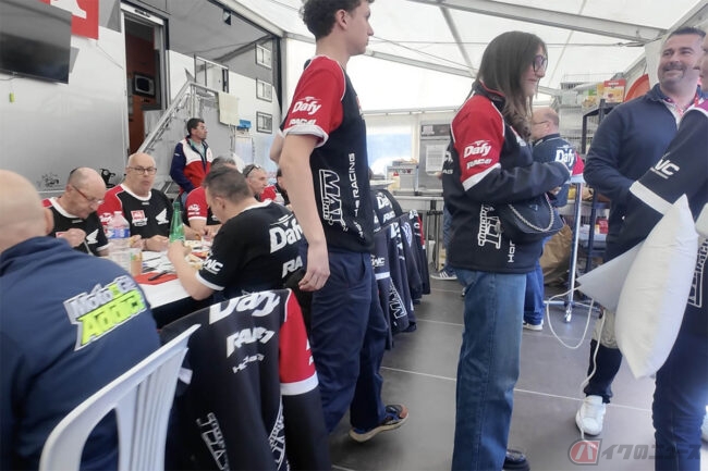 チームの関係者が招待してくれたので、私もドキドキしながらチームのホスピに入ってみると、ライダーの方々をはじめチームの皆さんがとても優しく迎え入れてくれ、「これ美味しいよ! 食べてみな!」と距離感なくフラットに話しかけてくれるのがとても嬉しかったです。