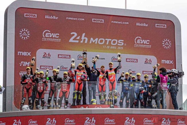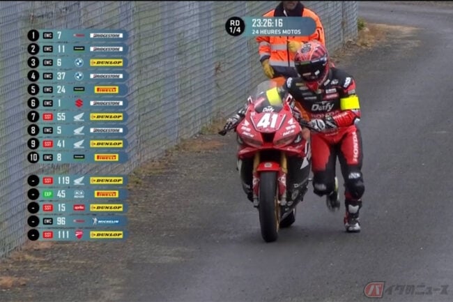 いよいよ残り15分、ディエゴ選手が危なげない走りで走行を続け、ようやく15時に無事SSTクラス2位でチェッカー! 最終的にはレース全体で202クラッシュ、13チームがリタイアとなる、EWCの歴史上もっとも転倒回数が多く、サバイバルなレースだったようです。