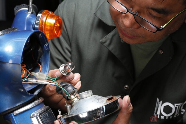1974年に生産された、通称「かもめ」スーパーカブC90の2型をベース車両に、メンテナンス&チューニングを楽しんでいます。前回は点火系の要である「ポイント」と「バッテリー」を見直しましたが、それによって明らかになったのが、滅多に使わない電装機器が不調でした。