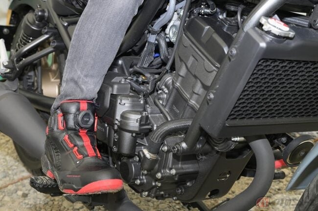 実際に跨ってみると、両足はベタ付きになるので身長158cmのわたしでも安心できます。シート高690mmと足つきの良さも抜群。小柄な女性のミカタにもなってくれるんです。