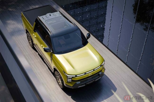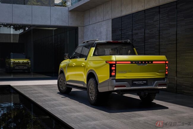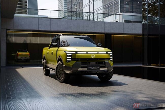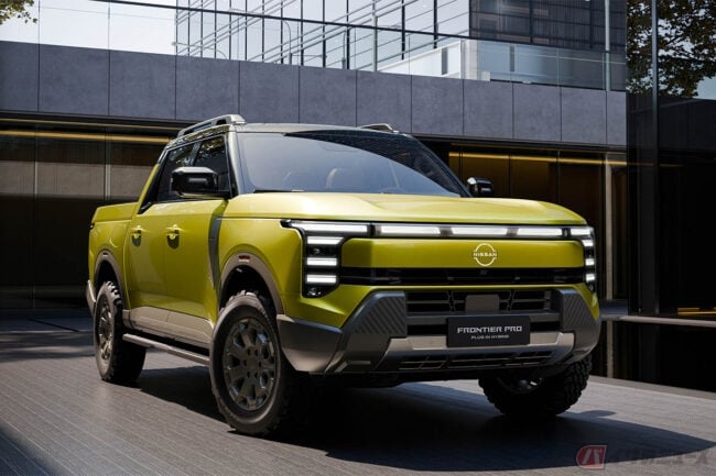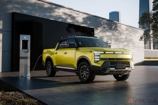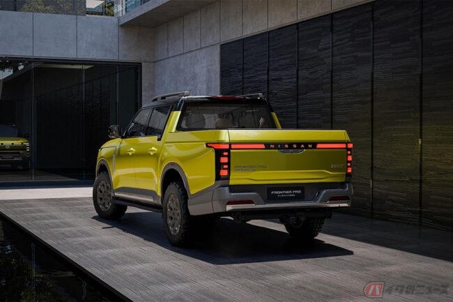 EV走行時の最大航続距離は135km、初のEVピックアップトラック! 日産が上海モーターショー2025で「Frontier Pro」を世界初公開
