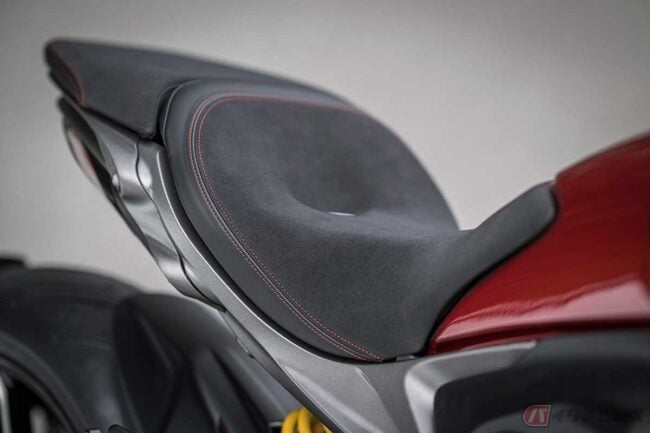 ドゥカティの他モデルのようなシンプルなカラーでなく、微に入り細にわたったカラーを採用。色だけに注目してみても、「XディアベルV4」の美学を感じとることができるのです。