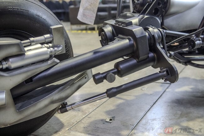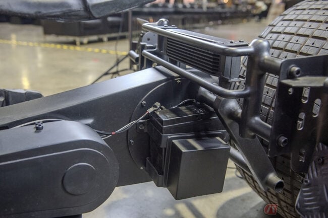 また、駆動方式はチェーンドライブからシャフトドライブに変換。気になるパワートレインはクラッチ操作の要らないバックギア付きのカブ系横型エンジンを採用しハンドシフトでギアチェンジを行うのですが、製作関係者曰く「実際に走行することは可能ですが、車体が重く今のエンジンではパワー不足でスピードは出ません(笑)。だけどバンコクの街中をバットポッドが走ってたら、それだけでカッコイイしビックリするでしょ? 日本でも走ってみたいですね(笑)」と話します。