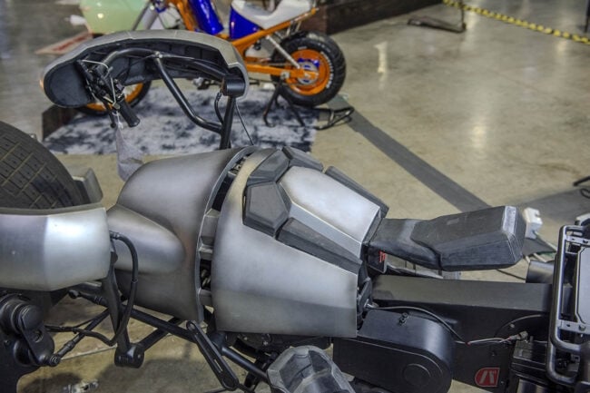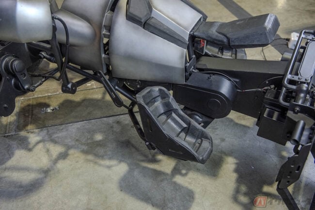 同カスタムバイクは、当然ですがフレーム・外装、フロントタイヤ回りのマシンガンなど全て、手作りのイチから製作されているのですが、その再現度の高さに驚かされます。