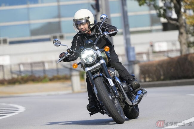 クラシックでありながらも古さは感じず、むしろ私にとっては今っぽいイメージ。ファッションでいうと、白のブラウスにお気に入りのデニムを合わせた、どの時代にも通用するシンプルカジュアルコーデ感があるバイクだと思います。
