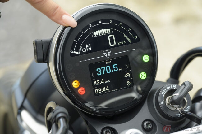 クラシックかつモダンなポイントといえば、メーターにも注目! デジタルな液晶でありながら、ちょっとアナログテイストな雰囲気も採り入れられるこだわりの強さ! サイズも大きすぎずシンプルなので、クラシックなスタイルにも馴染んでいました。