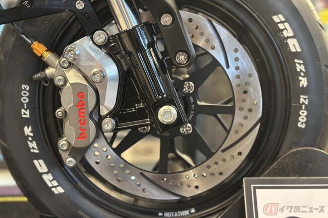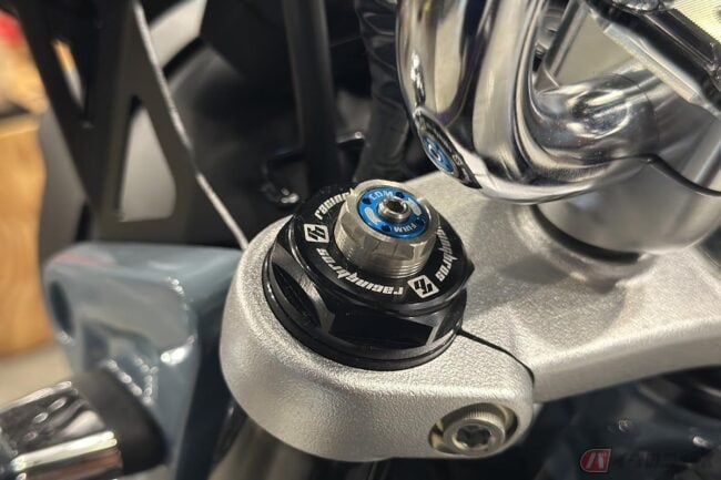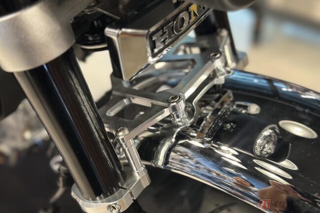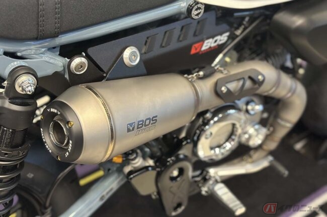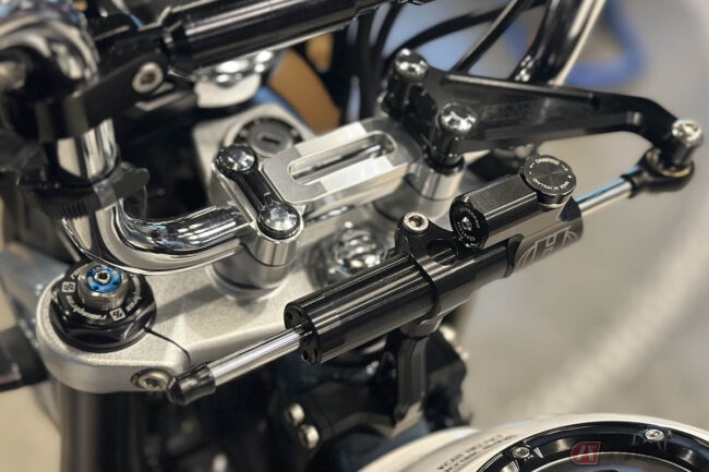 前後共にレーシングブロス製のサスペンション、キャリパーはブレンボに換装し、ハイパープロ製のステアリングダンパーも装備。そしてエキゾーストには日本ではあまりお目にかかれないBOS EXHAUSTをチョイスするというカスタムショップ顔負けのパーツチョイスを行っています。