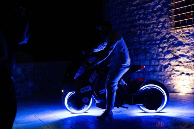 ホイールカバーとリムの間には音吸収フォームを装着し、低周波の音を発生させることで電気モーターの唸りがライダーの体に共鳴するほか、暗闇で光るLEDも仕組まれています。