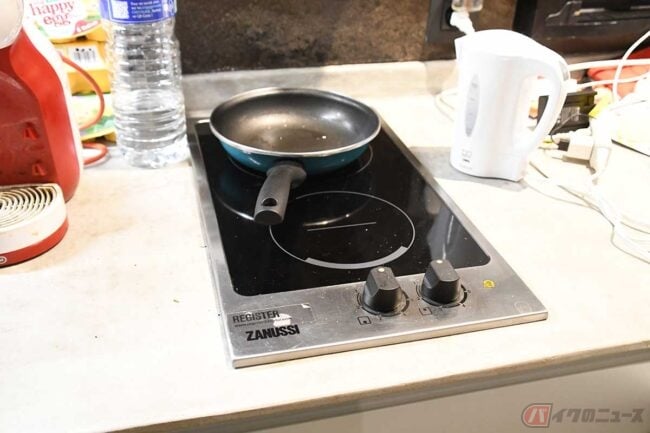お湯は電気で温めるボイラーがついていて、フルに使って2人分のシャワーは全く問題なく使えます。もちろんキッチンもお湯が出ます。