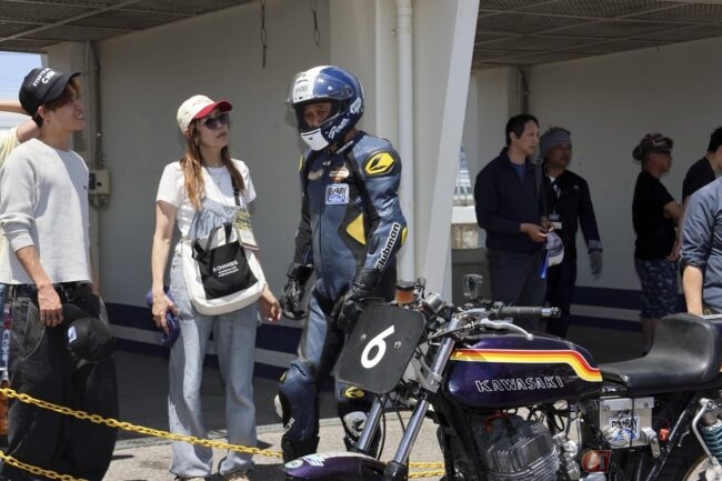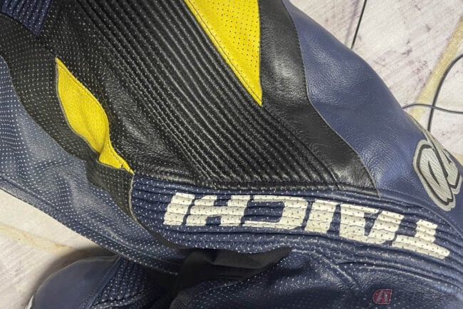 ゴトーが使用しているのはアールエスタイチのレザースーツ「NXL304」。メーカーに問い合わせたところエアバッグの装着が可能だという返答をいただきました。スーツの中に装着するので外観はほとんど変わりません。