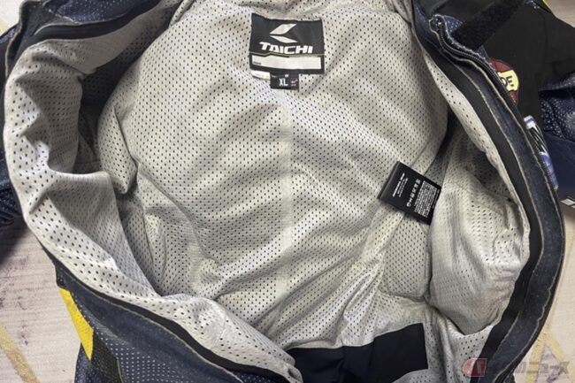 加工が終わって戻ってきたレザースーツは一見すると何も変わっていないかのよう。「あれ、加工し忘れているんじゃないか」なんて思ってしまうほどで、スーツの内側を見てもエアバックが見えないんです。