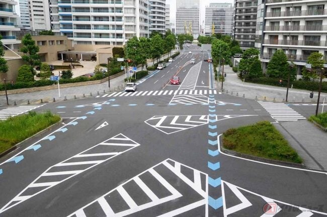 そもそも、ゼブラゾーンは直進レーンと右折レーンが分岐する地点などに設けられることが多く、道路上の流れをスムーズにするための標示とされる場所。たとえば交差点が複雑な形状をしている場合や、車線数が減る手前などでも導流帯は利用されます。