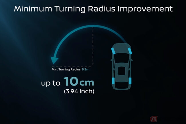 ホイールサイズは19インチですが、最小回転半径を0.1メートル(3.94インチ)改善し、5.3メートルを実現。これは、ラックアシストタイプの電動パワーステアリングシステムの改良によるもので、都市部での車両の取り回しの良さを確かなものにしています。