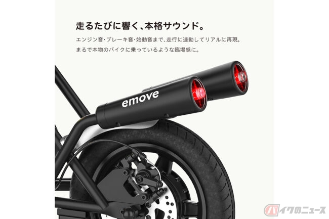 また、emoveではエンジン音・ブレーキ音・始動音が走行に連動して流れる仕組みを取り入れることで本物のバイクに乗っているような臨場感を体感可能。