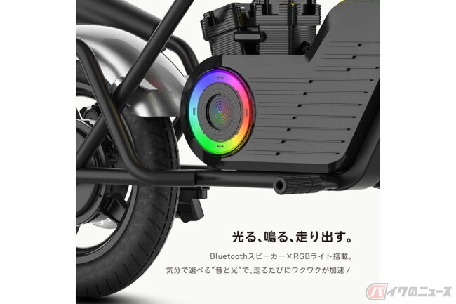 Bluetoothスピーカーでお気に入りの音を出し、ライトを光らせながら走ることもできます。