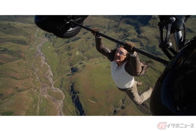 オーストリアの断崖絶壁から、トム・クルーズがホンダのモトクロッサー「CRF250R」を駆ってジャンプし、パラシュート降下へ移行するシーンは衝撃的。撮影のためになんと1万3000回もバイクジャンプを繰り返し練習し、1年以上にもわたるトレーニングを積んだそうで、自身も「俳優人生で最も危険なスタントを行った」と語るほどです。
