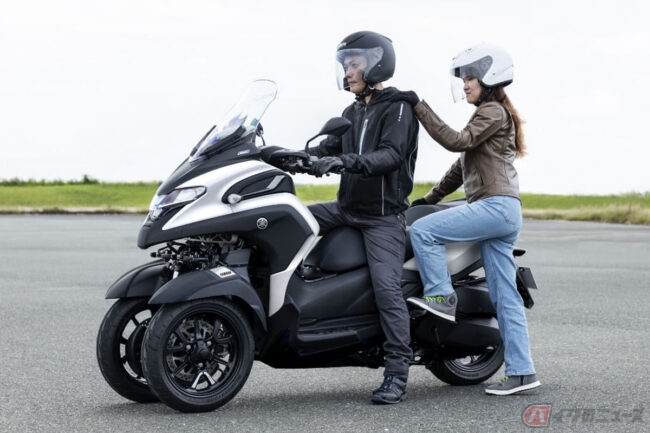停車時や押し歩き時に車両の自立をサポート!! “My Right Arm”(ビジネスを支えてくれる右腕)をコンセプトに開発されたヤマハの3輪スクーター「トリシティ300」最新モデル発売