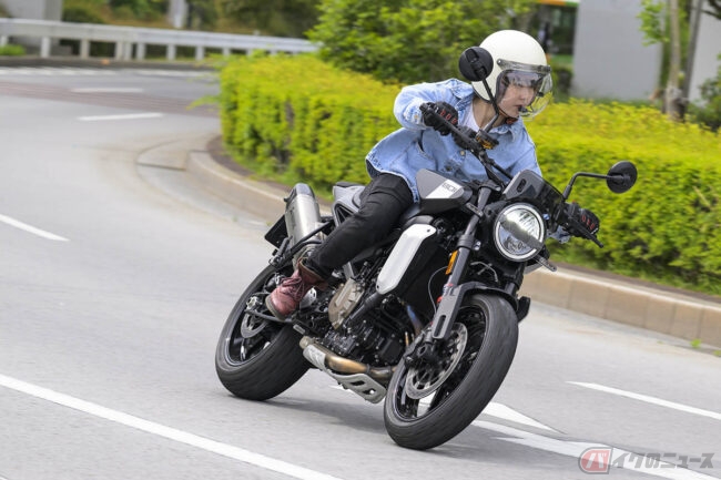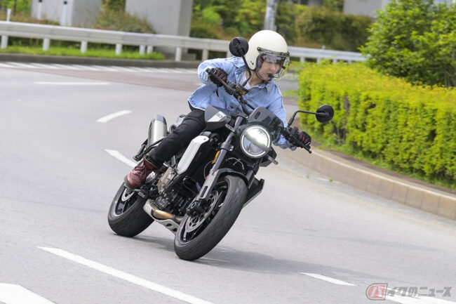 コーナリングも軽快! 細身で前傾がキツすぎないポジションなので、街乗りはもちろんワインディングでも自然に車体を倒しこめます。