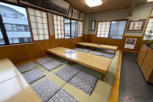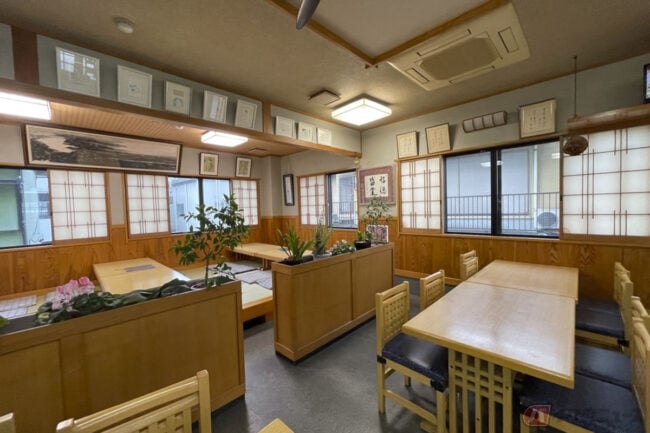 民宿と料理茶屋を併設したお店は広々。昭和レトロ感が漂っています。で、なんでこのお店が穴場かってことなんですが、営業中でも暖簾を出さないからなんです。