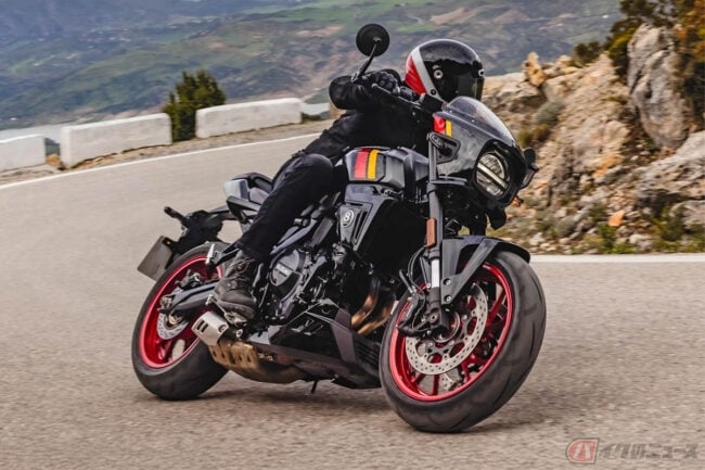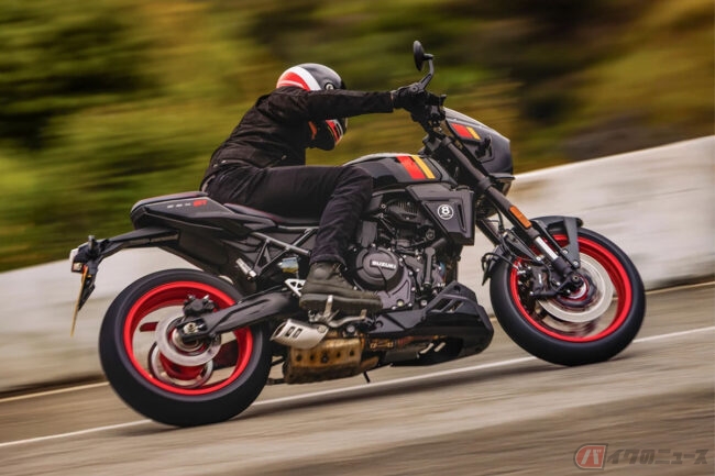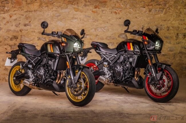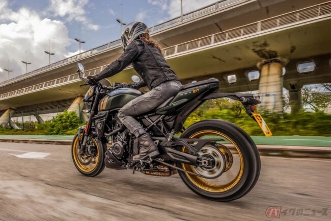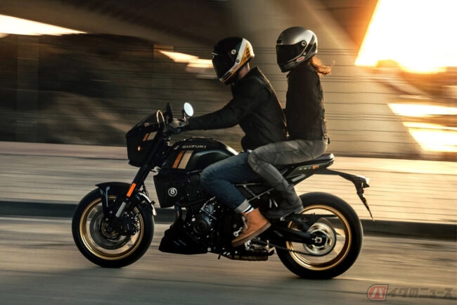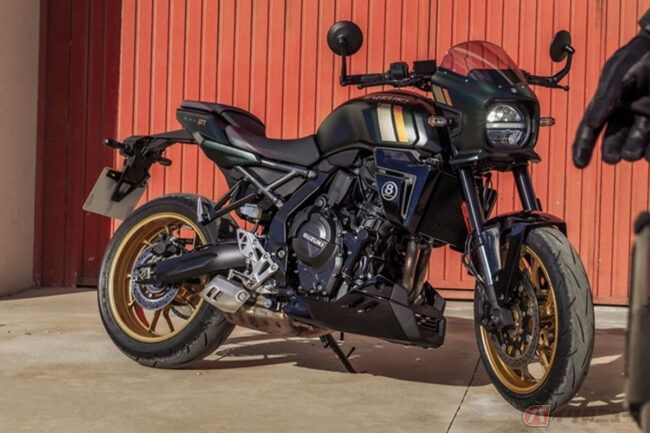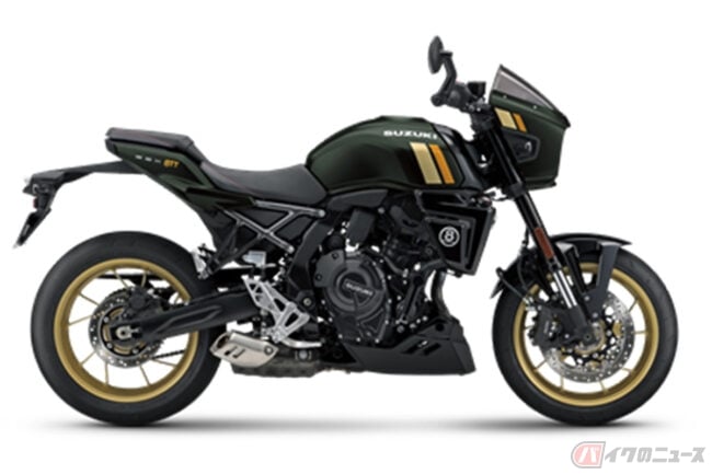 同社のネイキッドモデル「GSX-8S」「GSX-8R」で採⽤され⾼い評価を得ている776cc のコンパクトな直列2気筒エンジンと⾼剛性なスチールフレーム、軽量なアルミスイングアームを組み合わせることで機敏性や快適性を⾼めたGSX-8TTは、スズキの過去の名⾞の個性的で魅⼒的な要素と現代的なデザインを融合させつつ、最新の技術やエンジン、⾞体を採⽤したネオレトロバイクです。