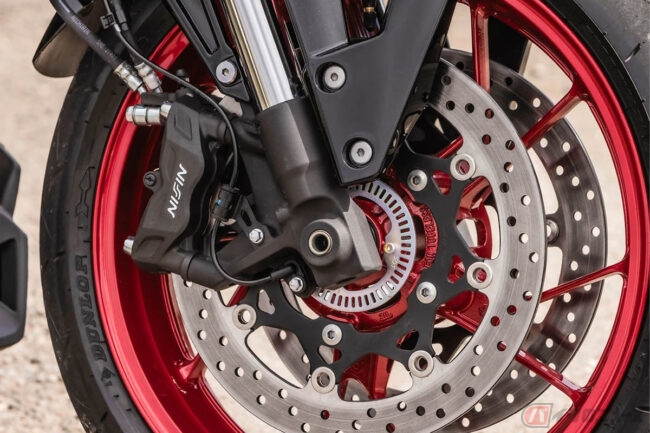 ⾞体⾊は、ブラックのフロントフォークやシュラウド、グレーのシートレールなどを採⽤し上質で落ち着いた配⾊とすることで、ホイールやデカールのスポーティーなアクセントを際⽴たせたカラーリングに。
