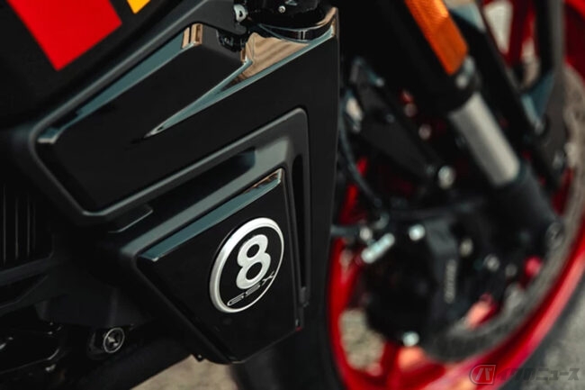 スズキの過去のモデルで採⽤されていたクラシカルで特徴的なフラットボトムのライトに着想を得た丸形ヘッドライトやハンドルバーエンドミラーを採⽤し、レトロを感じさせながらモダンな外観に仕上げられたGSX-8TTでは、スズキドライブモードセレクター (SDMS) や電⼦制御スロットル、双⽅向クイックシフトなど、ライダーをアシストする電⼦制御システム「S.I.R.S.」や、軽量、コンパクトで信頼性が⾼く、低温時でも⾼い始動性を発揮する ELIIY Power 製のリチウムイオンバッテリーを採⽤することで、幅広いユーザーが安⼼してスポーツライディングを楽しめるバイクに仕上げられています。