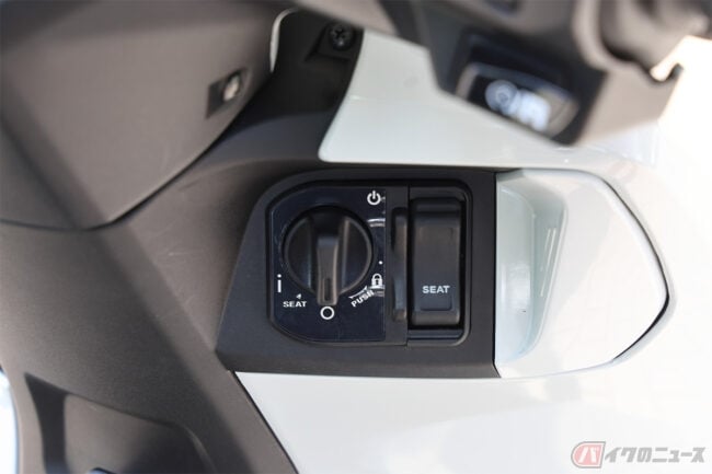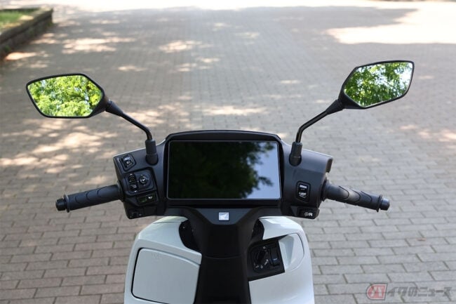 ここ最近は大型バイクばかり乗っていて久しぶりのスクーターだったからか、ハンドル幅はちょい狭いかなー? と感じたかな。