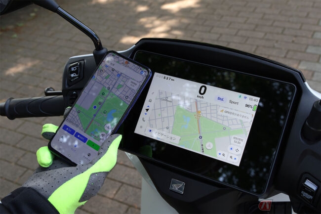 ホンダ専用アプリ「Honda RoadSync Duo(ホンダ・ロードシンク・デュオ)」をBluetoothで繋げば、通話やナビゲーション機能なども利用できるようになるよ。