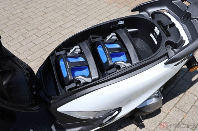 Gachacoのバッテリーステーションで実際にバッテリー交換をしてみたけど、CUV e:のシート下にはバッテリーが2個積んであって、一つの重さが約10kg。