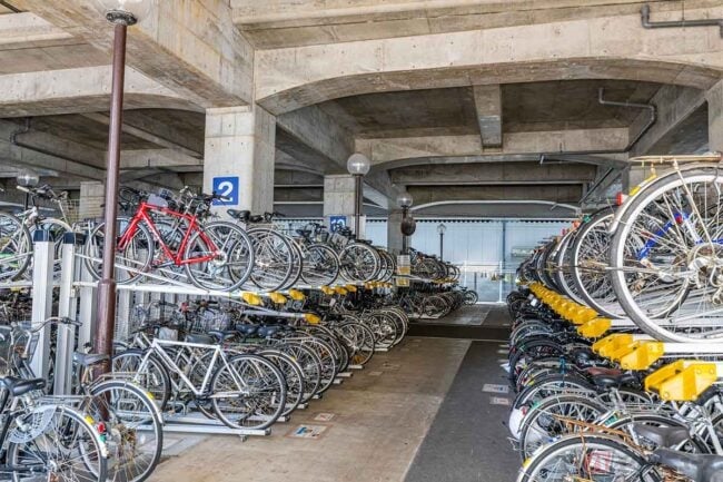 自転車ラックなどのない平面の場合は、奥から詰めて入れる、通路にはみ出さないようにまっすぐ整列するなど配慮し、できるだけたくさんの自転車が収容できるよう気を配っておきたいところです。