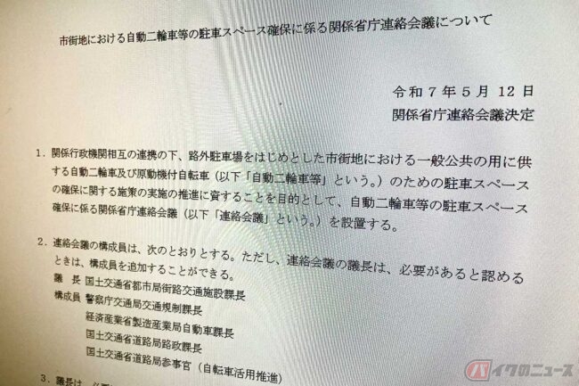 どうなる!? 進まないバイク駐車スペース拡大 関係省庁連絡会議で課長級のベストメンバーがそろう