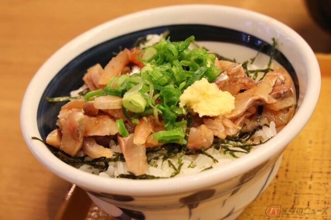 「あじ丼」は鯵の刺身を甘口醤油で漬けにしているのか、味が馴染んでいて美味しいです。さすが丼がウリの店です。