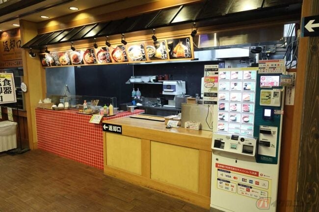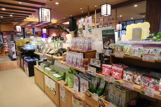 お茶などの特産品が売られている「森の楽市茶屋」の前を通り過ぎてフードコートへ。さて、何を食べようかとメニューボードをチェックします。このフードコートには、甘味や抹茶のソフトクリームの「森町茶屋」、麺類の「遠州製麺所」、丼物の「のっけどん」、鉄板焼きの「ぶたたま食堂」があります。